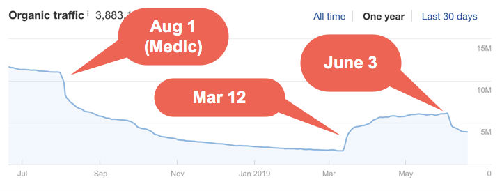 Googleがこのアップデートでページ速度、SSL、モバイルフレンドリーなどの他の要素を考慮に入れている可能性は確かにありますが、ドロップが発生したすべてのサイトには、EATの現在の理解によって説明できる問題があると確信しています。 。