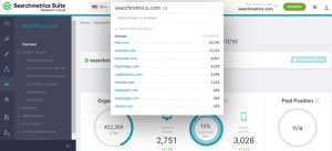 次は楽しいステップです–競合他社が何をしているかをチェックします。 上記と同じツールであるリサーチツールのオーガニックランキングを使用して、ドメインをお気に入りの競合他社と比較できます。