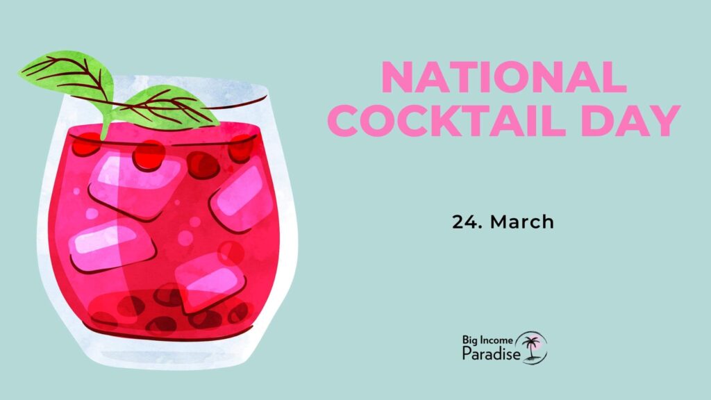 24.) ナショナル カクテル デー (3 月 24 日):あなたはビジネスのために一生懸命働いてきました。 リラックスしてお気に入りのカクテルを飲みましょう。