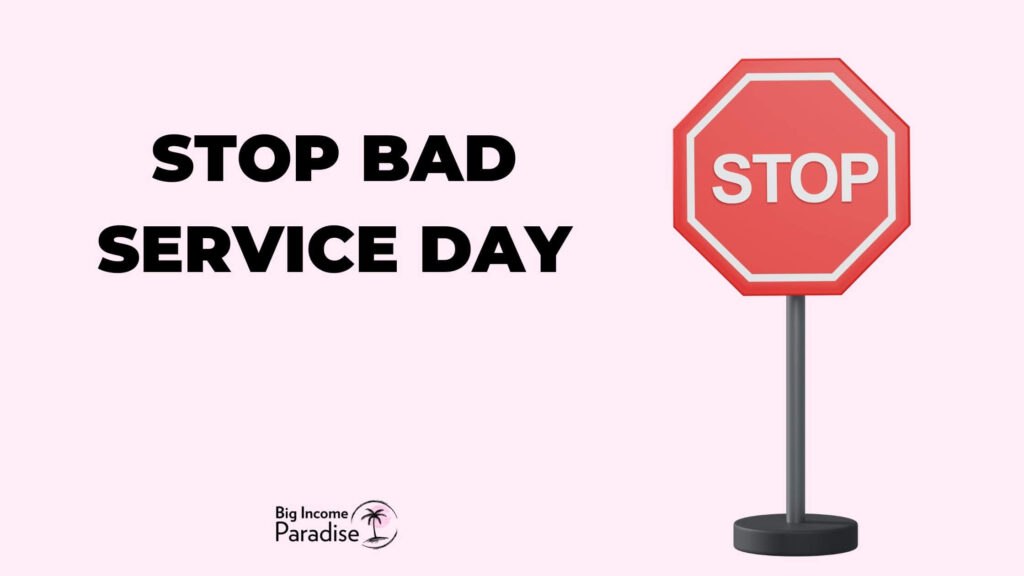 Stop Bad Service Day (3 月 2 日 – 毎年異なる日付):起業家として、良いサービスを提供したり受けたりするために努力する必要があります。 それでは、お粗末なサービスを停止する方法について話す時が来ました。