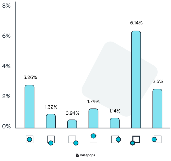 | 上位 10% のキャンペーン 画像を使用した上位の Wisepops ポップアップ キャンペーンの 10% は、平均で 25.33% の訪問者を変換しました。 |