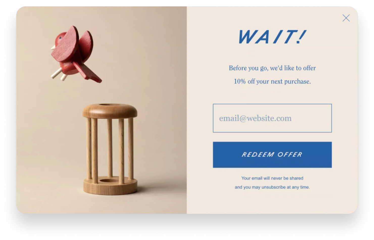 そのため、ポップアップで画像を使用することは、CVR を高める効果的な方法です。 見栄えの良い画像は、ポップアップ コピーを強化し、より多くの情報を伝え、ブランド イメージをサポートします。