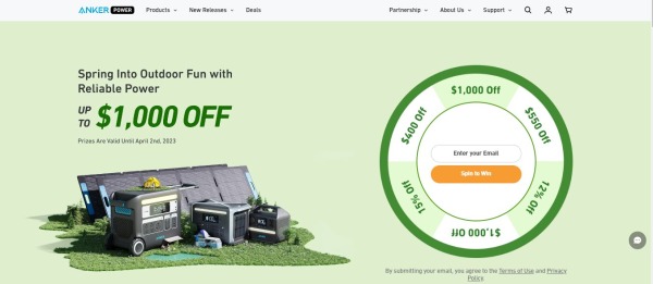 期間限定で、スピンして勝つチャンスがあり、購入で最大 $1,000 オフになり、特別な割引価格のロックを解除できます! この春と夏の週末のグランピングや日帰り旅行の準備をしましょう。Anker Power Station の驚異的な容量とコンパクトな設計により、ポータブル電源のニーズが満たされるからです。