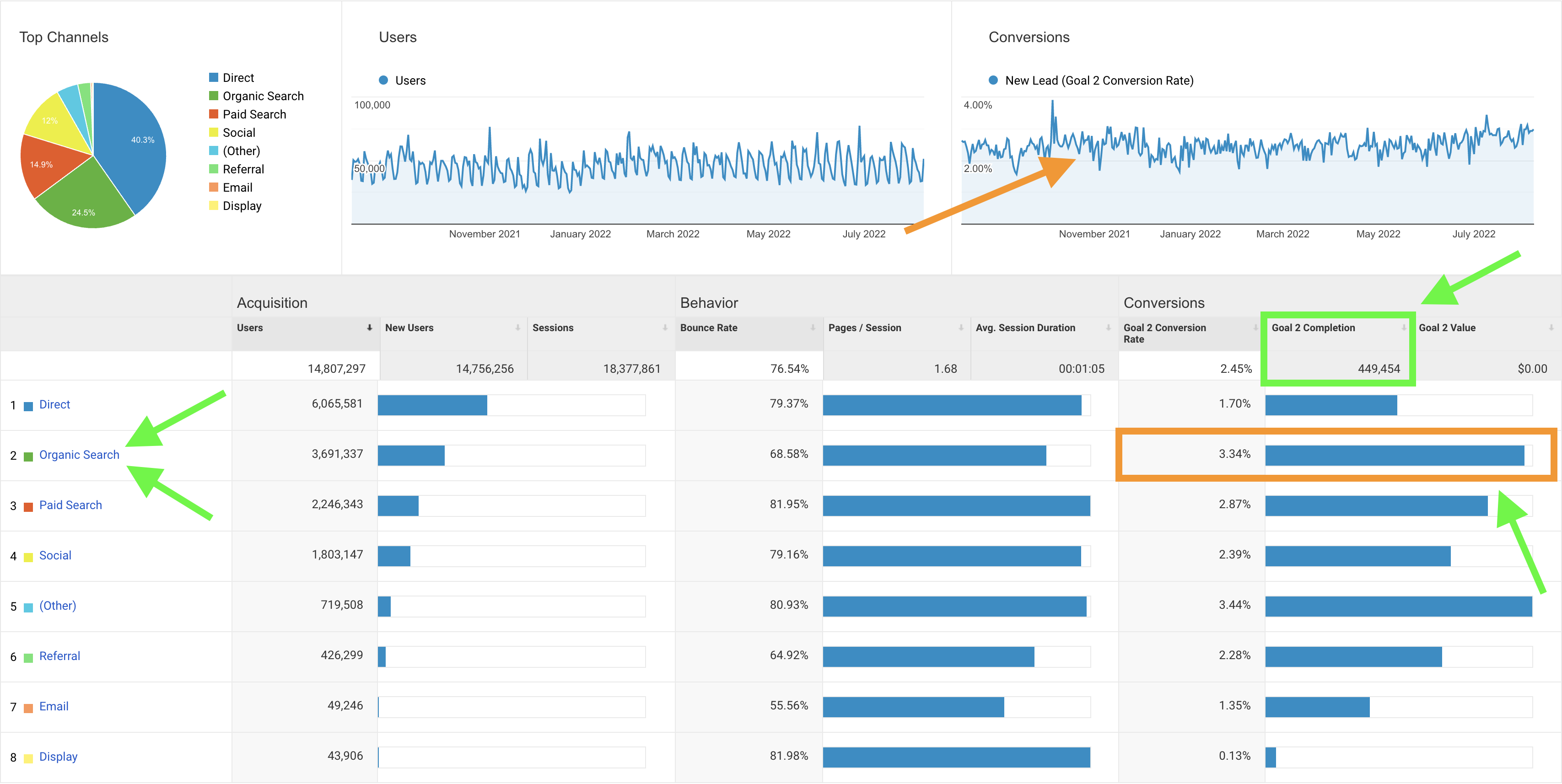 私たちのデータは、オーガニックリードのコンバージョン率が 2 倍から 3 倍優れていることを示しています…