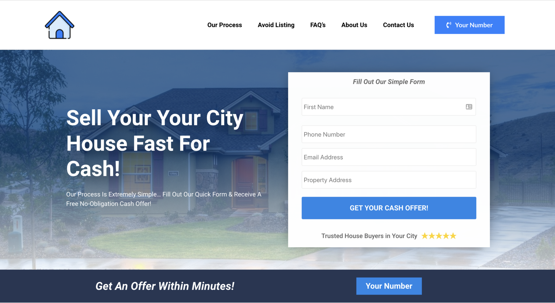 - また、物件をより迅速に出品および販売するための現金購入者向け Web サイト、所有者向け賃貸/賃貸購入住宅をより迅速に満員にするための賃貸人向け Web サイト、土地購入者または土地販売者サイトなどのテンプレートも提供でき、さらに多くのオプションも提供できます。 。