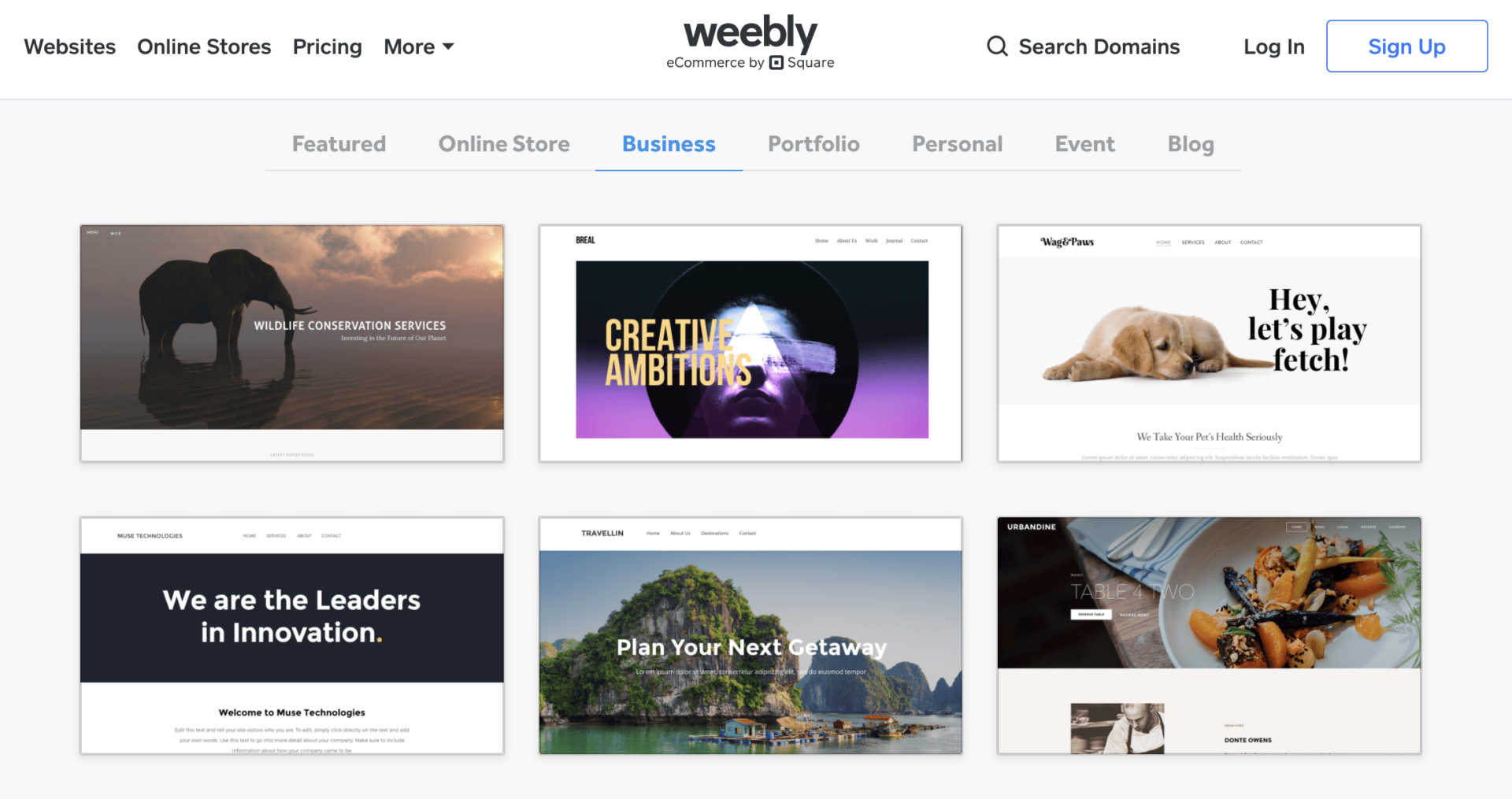 Weebly は「不動産」テンプレートを直接提供していませんが、選択できる多数の「ビジネス」テンプレートがあります。 以下はウェブサイトビルダーのテンプレートの例です…