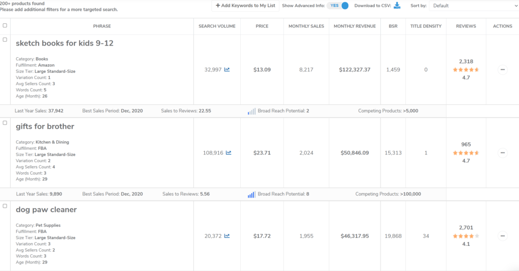 これらの各キーワードを追跡して、現実的に生産できる製品、人々がすでに探している製品、そして自分たちを宣伝しようとしている売り手の軍隊がまだいない製品であるかどうかを確認できます。