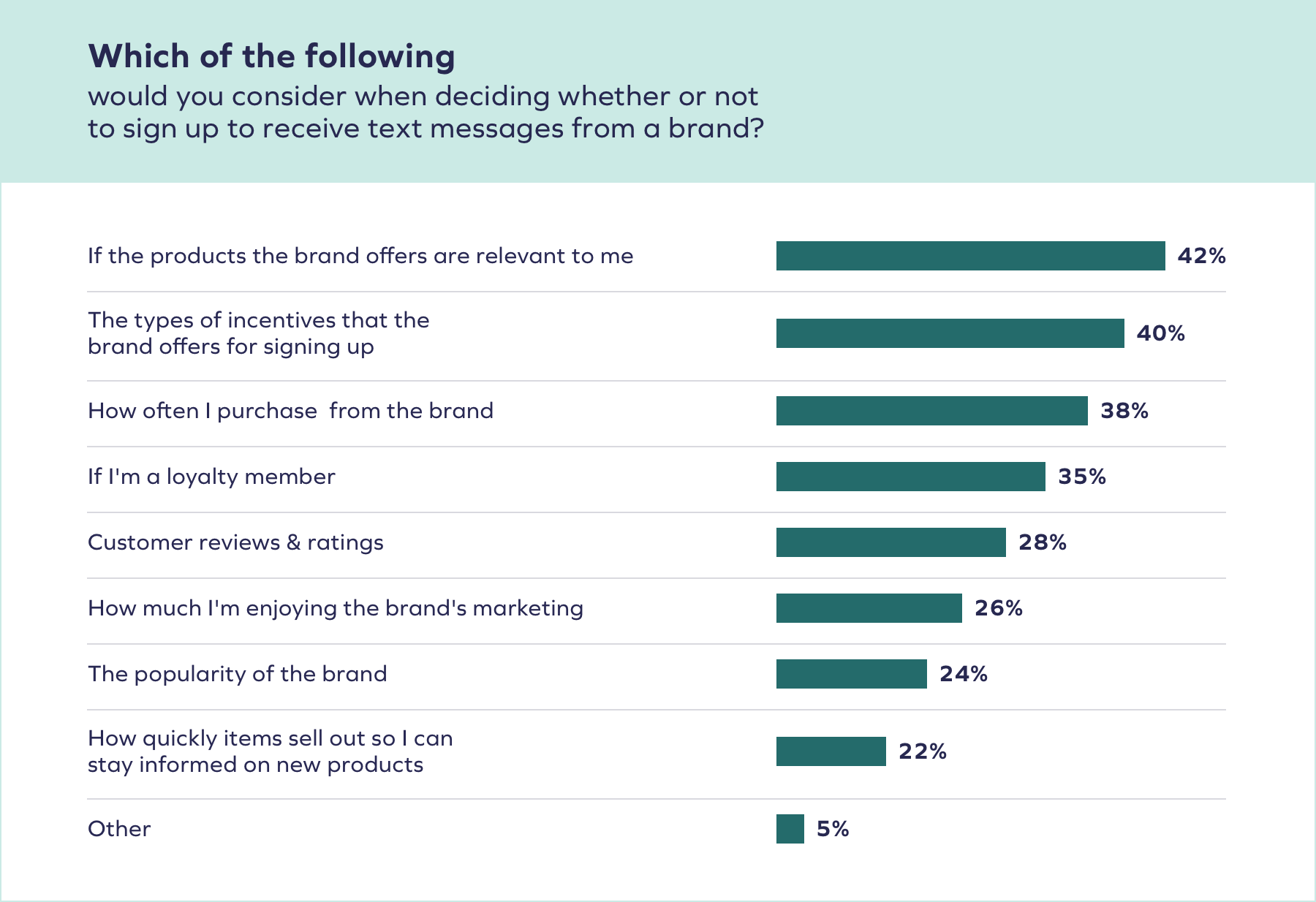 買い物客は、ブランドからテキストメッセージを受信するかどうかを決定するときに、これらの特典などを考慮します。