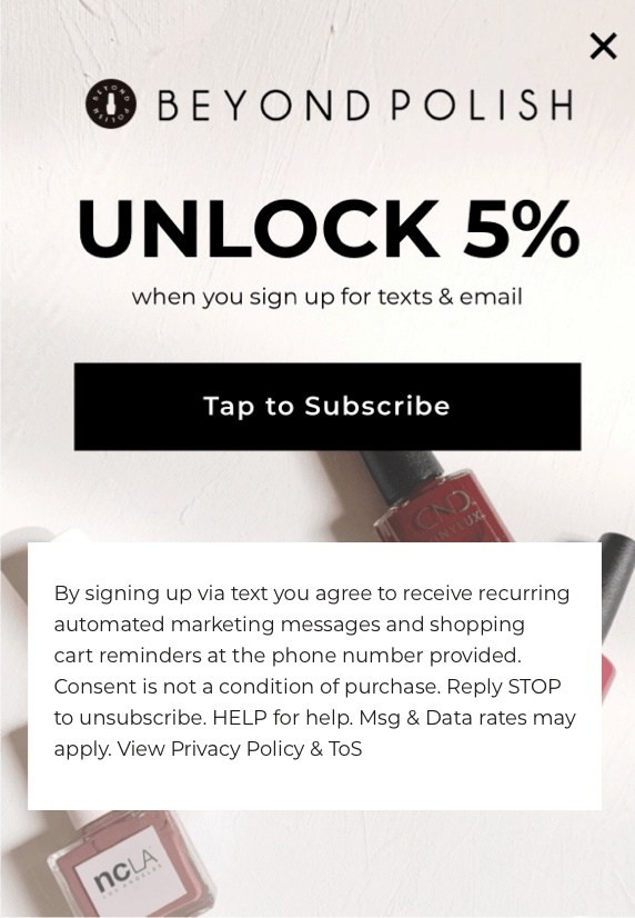 データは、 SMSが他のマーケティングコミュニケーションチャネルに取って代わるべきではなく、それらを補完するべきであることを示しています。 SMSと電子メールの二重アプローチを採用して、情報を適切に広め、チャネル全体のエンゲージメントを向上させ、顧客が常に「最初に知る」ために両方にサインアップするように促します。 電子メールSMSのデュアルキャプチャ用に最適化されたサブスクライバー収集ツールを活用して1つの魅力的なタッチポイントで収集作業を統合できます
