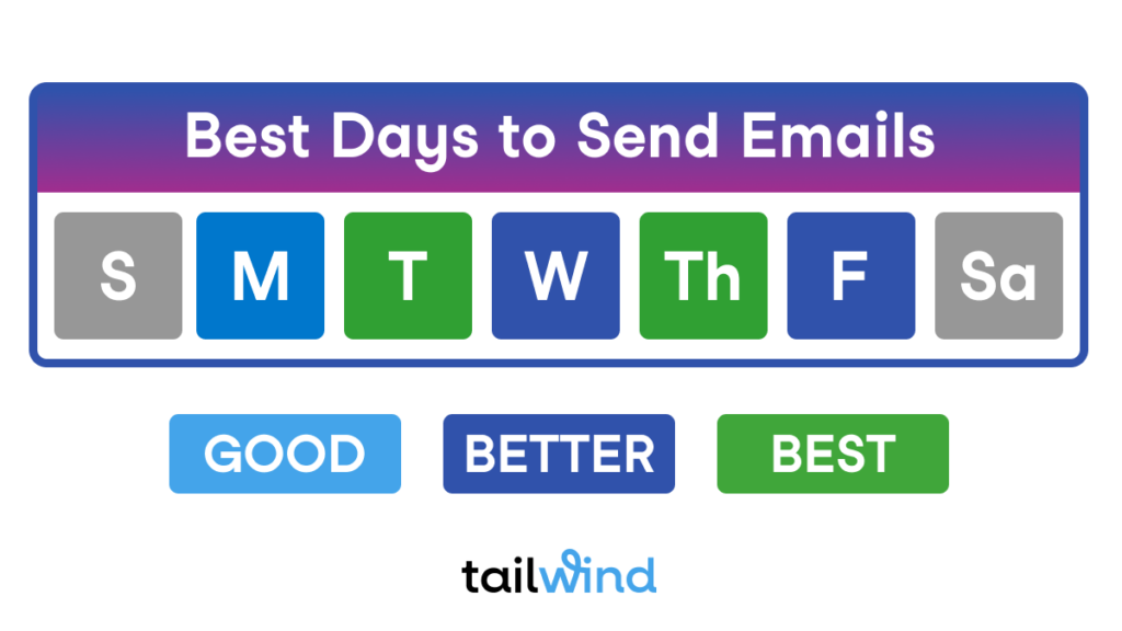 Mailchimp(人気のある電子メールソフトウェア)は、火曜日、水曜日、木曜日が最高の日であると言って、その情報を裏付けています。