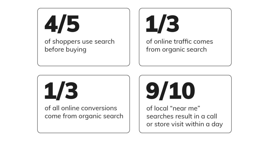 SEO が正しく行われていれば、電子商取引企業は顧客を獲得するための非常にコスト効率が高く持続可能なチャネルを手に入れ、混雑した市場で優位に立つことができます。