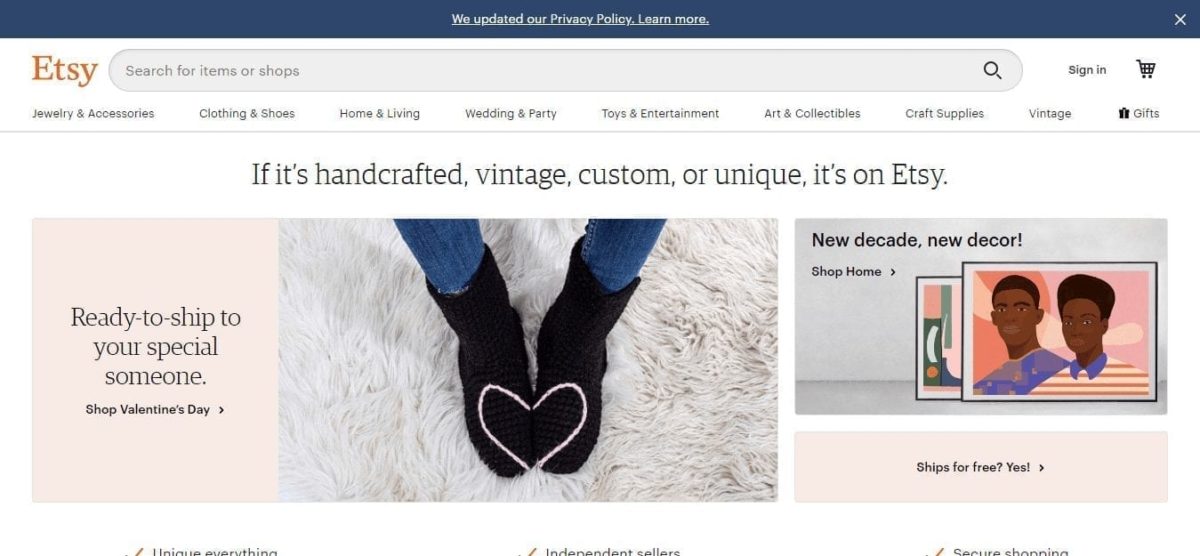 最大の e コマース企業の 1 つに Etsy があり、ハンドメイドの商品を主力商品または価値として扱っています。