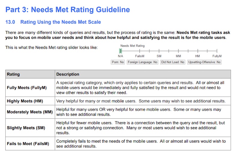最近私たちを忙しくさせているもう1つのことは、Googleの品質評価者ガイドラインに加えられた最近の変更を分析することでした。 「満たす必要がある」の定義は変更されていませんが、いくつかの新しい例と、特定のページが検索者のニーズを満たすのに適しているかどうかを評価者が判断するのに役立つより明確な例があります。