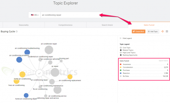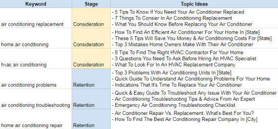 エアコン修理事業のコンテンツを作りたいのなら、人々が必要としている情報の種類を、ニーズやその他の要素との関連で考える必要があります。 このアプローチを採用することで、カスタマージャーニーのさまざまな時点でお客様に最適なコンテンツを開発できるようになります。 秘訣は、調査しているトピックの検索ファネルを理解することです。