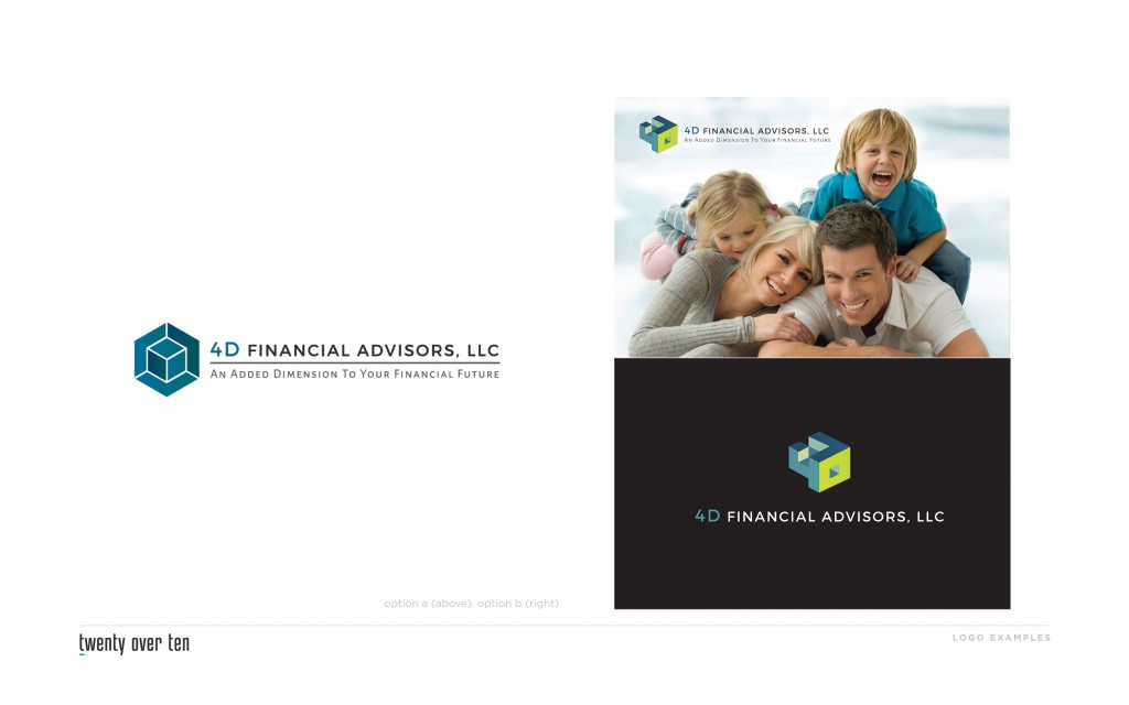 シカゴを拠点とする4DFinancialAdvisorsにとって、会社の名前はデザインにインスピレーションを与えました。 立方体は名前を明確に表しています。
