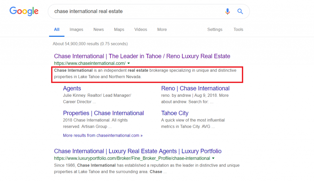 메타 설명이 Google 검색에서 콘텐츠 제목 아래 눈에 띄게 표시되는 방식을 보면 Google 알고리즘에서 메타 설명이 큰 역할을 한다고 쉽게 가정할 수 있습니다.