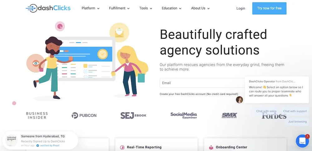 DashClicks는 SEO 리셀러 에이전시 플랫폼과 함께 화이트 라벨 SEO 서비스를 제공하는 SEO 리셀러 및 아웃소싱 에이전시 플랫폼입니다. 그들의 SEO 워크플로는 원활한 온보딩, 이행 및 고객 관리를 허용합니다.