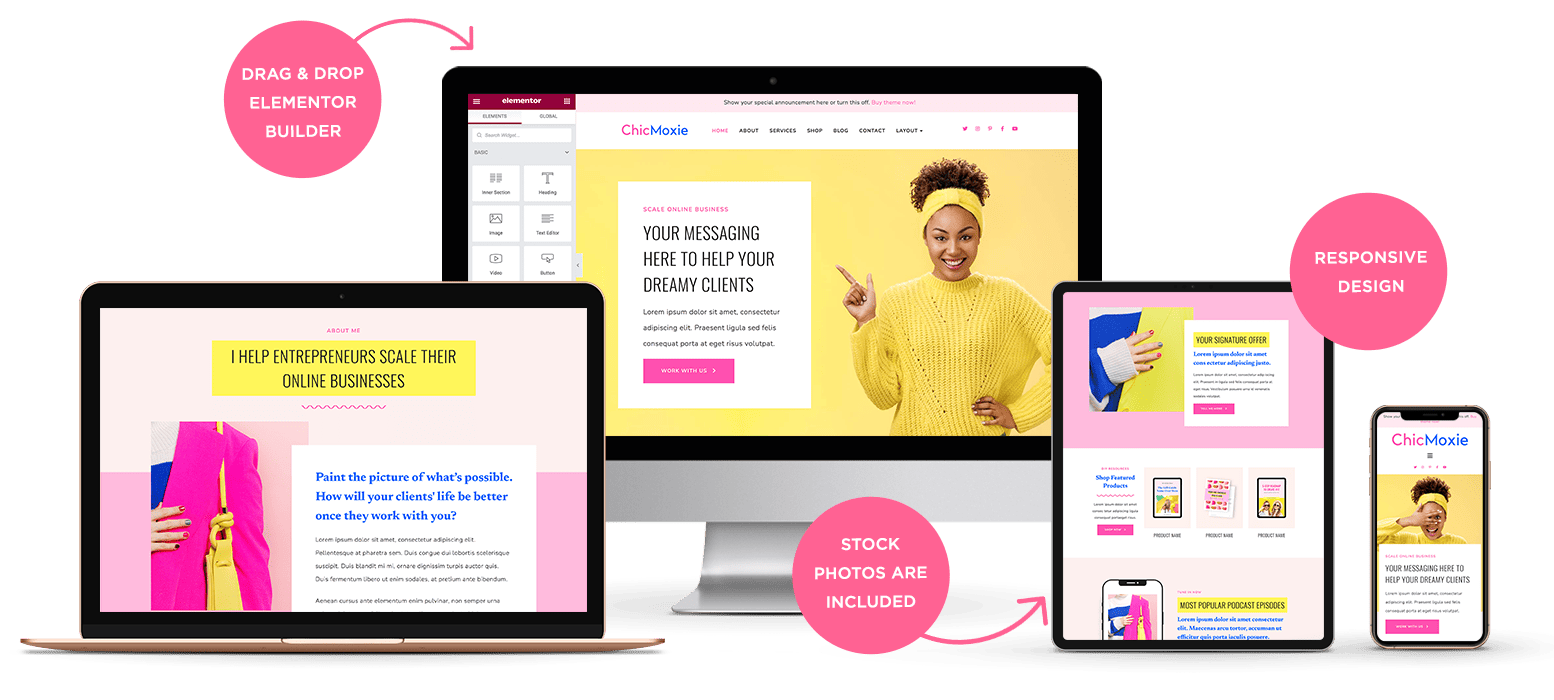 새로운 WordPress 테마인 ChicMoxie로 용기와 자신감을 보여주세요! 콘텐츠 제작자, 팟캐스터, 온라인 코스 제작자, 마케터 및 기타 소규모 비즈니스 모두에게 이 세련되고 영향력 있는 새로운 테마는 당신이 꿈꾸는 비즈니스를 구축하겠다는 결의를 줄 것입니다.