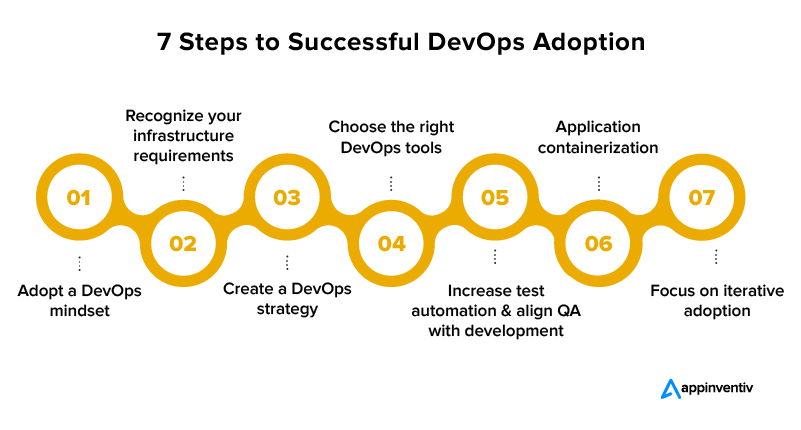 DevOps에 대한 아이디어는 새로운 것이 아니지만 10년 이상 존재했지만 많은 기업에서 아직 실행에 옮기지 않았습니다. 그리고 일부 조직에서는 여전히 DevOps를 사용하여 원하는 결과를 얻는 데 문제가 있습니다. DevOps를 성공적으로 채택하는 데 도움이 되는 단계는 다음과 같습니다.