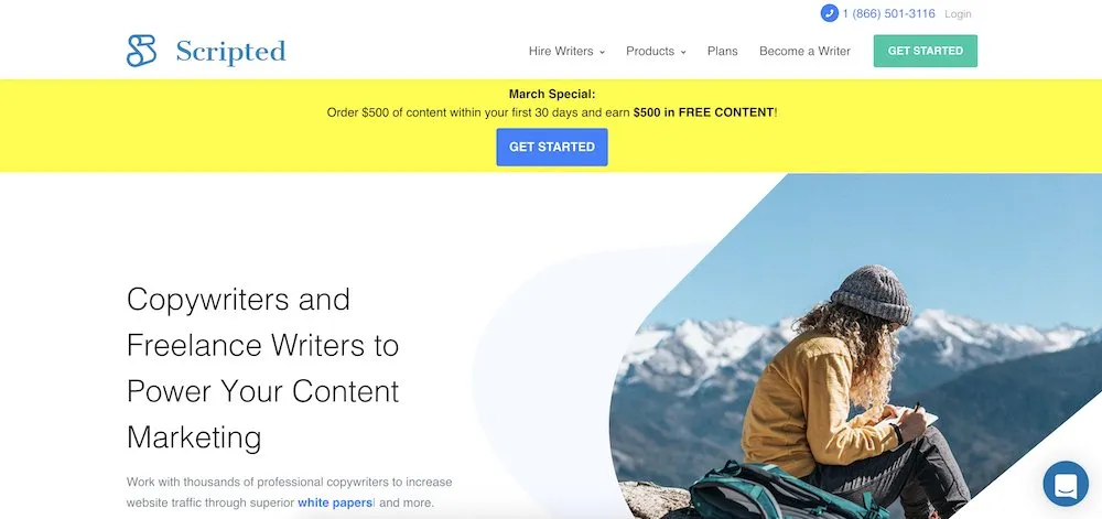 Scripted는 금융 작가를 비롯한 작가와 기업을 연결하는 온라인 마켓플레이스입니다. Scripted는 Upwork와 유사하지만 특히 작가를 위한 것입니다. Scripted를 사용하려면 콘텐츠 요구 사항과 원하는 기능에 따라 매월 특정 금액으로 가격이 책정되는 플랫폼에 가입해야 합니다.