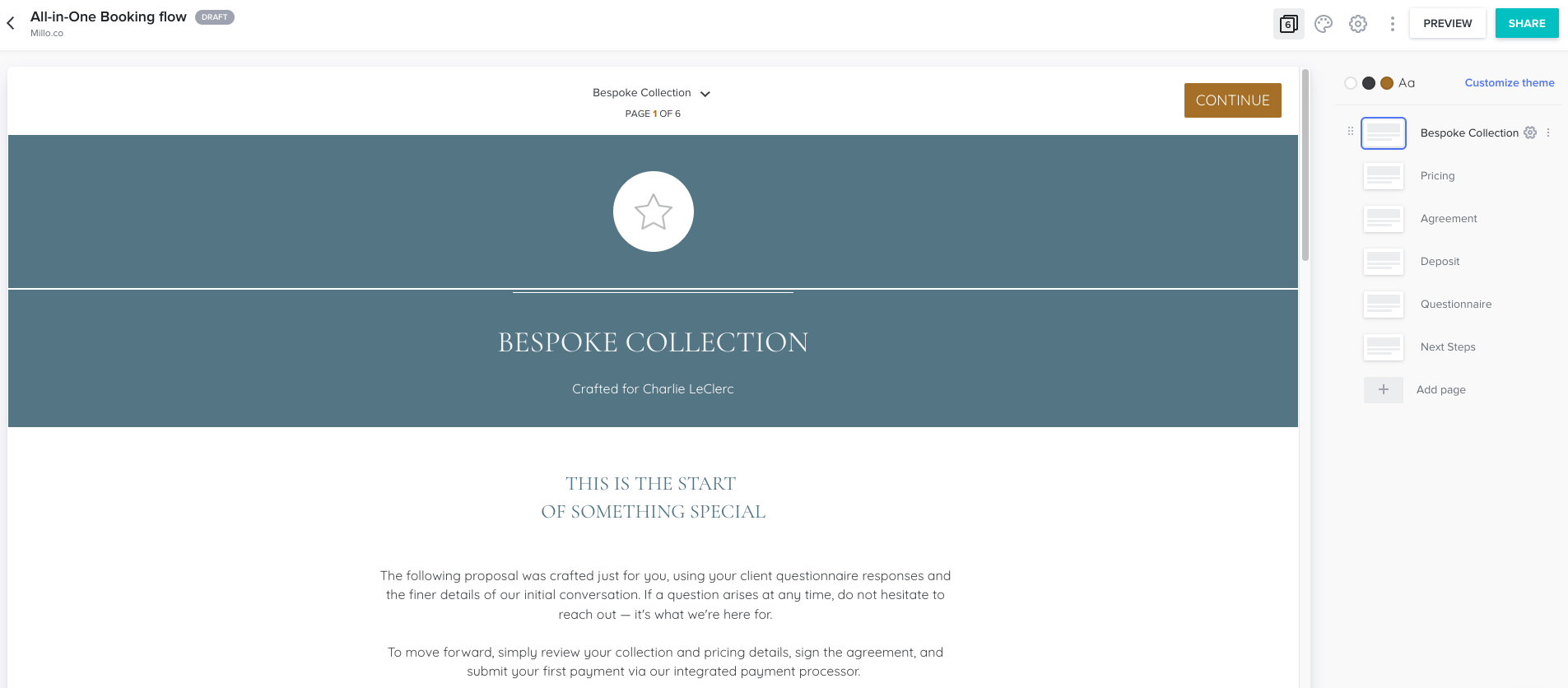 HoneyBook은 전문적으로 보이고 쉽게 고객을 유치하는 데 도움이 되는 제안 템플릿을 제공합니다. Hectic vs. HoneyBook을 보면 HoneyBook이 제안서를 계약 및 송장에 바로 통합할 수 있는 기능으로 약간의 우위를 점할 수 있습니다.
