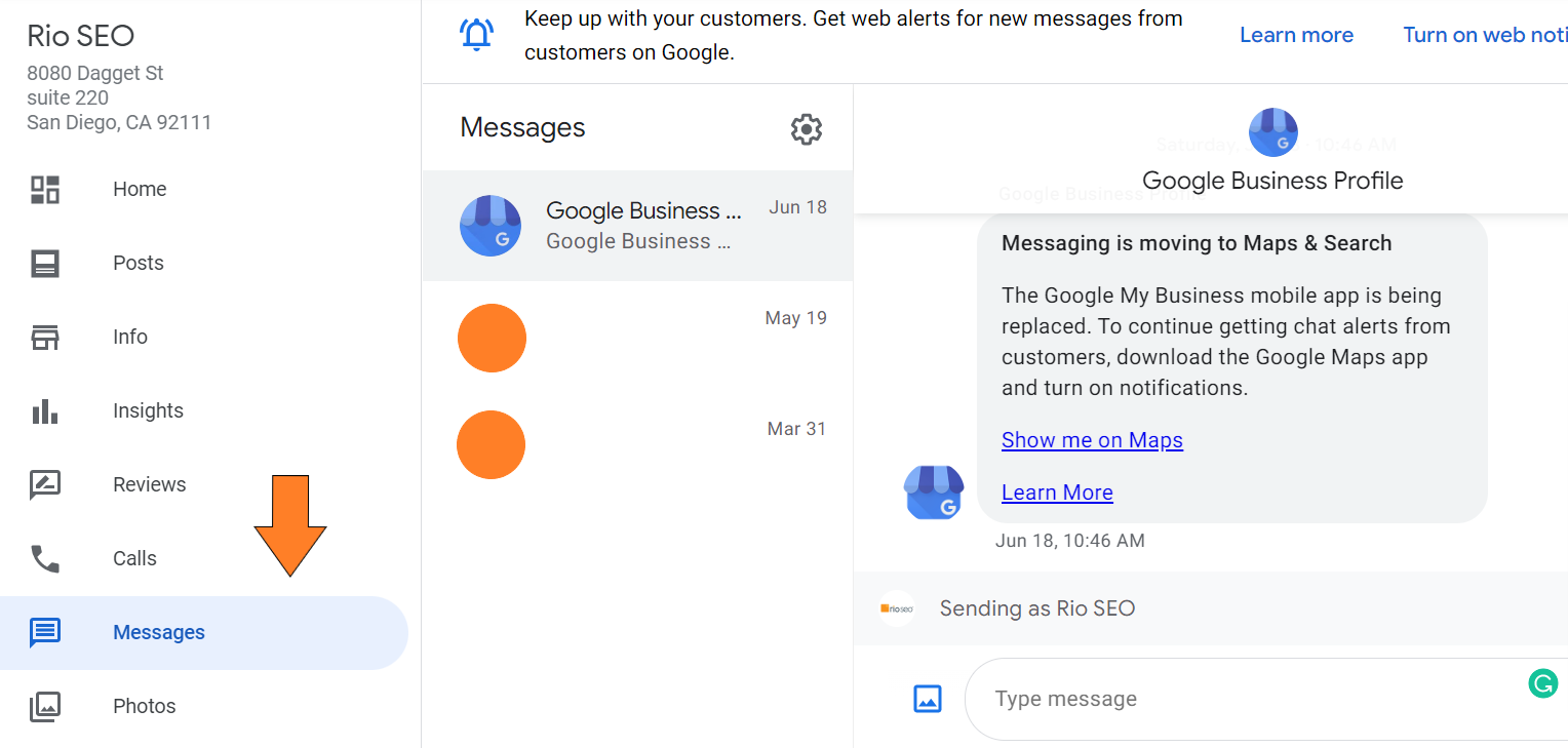 셀프 서비스의 또 다른 훌륭한 형태는 Google 비즈니스 프로필(GBP) 메시징으로, 이를 통해 검색자는 프로필에서 채팅 아이콘을 클릭하여 GBP로 비즈니스에 메시지를 보낼 수 있습니다. 잠재 고객과 기존 고객이 빠르고 쉽게 질문할 수 있는 방법입니다. 또한 이 기능을 통해 예약 또는 견적에 대한 특별 요청을 요청할 수 있습니다.