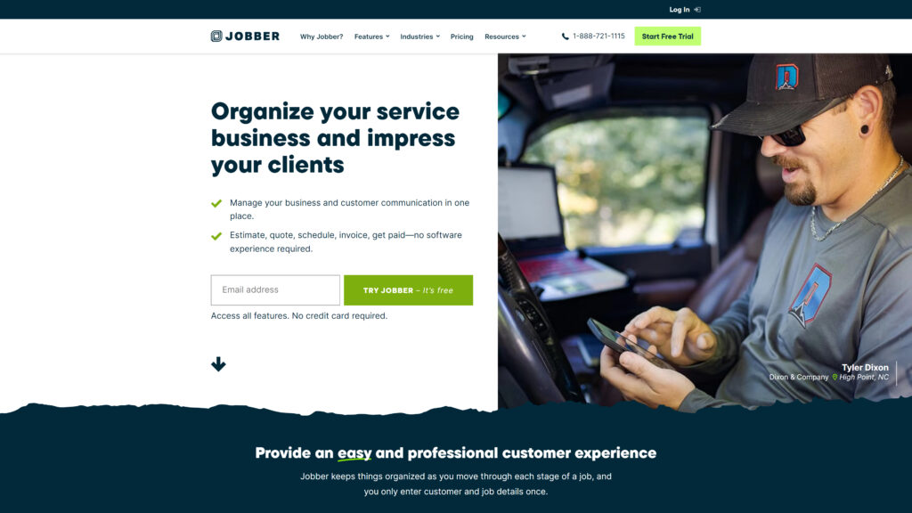 Jobber는 모바일 서비스 회사를 위해 설계된 현장 서비스 관리 프로그램입니다. 사용자가 고객 커뮤니케이션, 재무, 작업 일정 및 견적을 포함하여 일상 작업의 모든 측면을 관리하는 데 도움이 되는 도구가 있습니다.