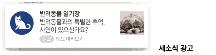 브랜드에 따라 타게팅된 퍼포먼스형 광고입니다. 밴드 메인 화면, 밴드 새글 피드 화면, 모바일 메인 화면(뉴스편, 연예편, 스포츠편…) 모바일 보조 화면(편별 기사 하단), 카페 피드 화면 등으로 노출 가능 - 브랜딩 DA