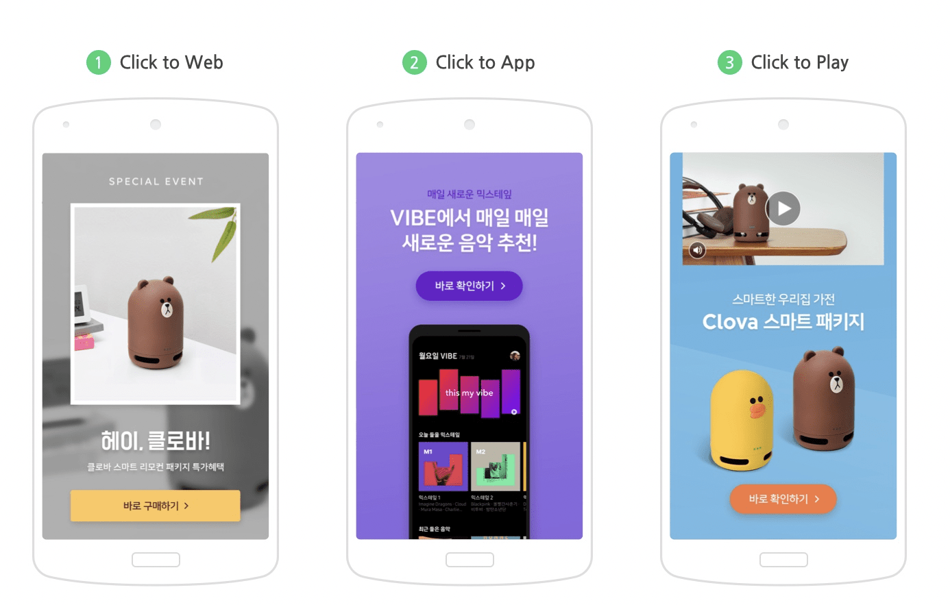 앱 끝에 노출되는 안드로이드 전용 제품으로 브랜드 인지도와 클릭수를 극대화하세요. 제공되는 총 3개의 템플릿 중 캠페인의 성격에 따라 선택적으로 실행됩니다.