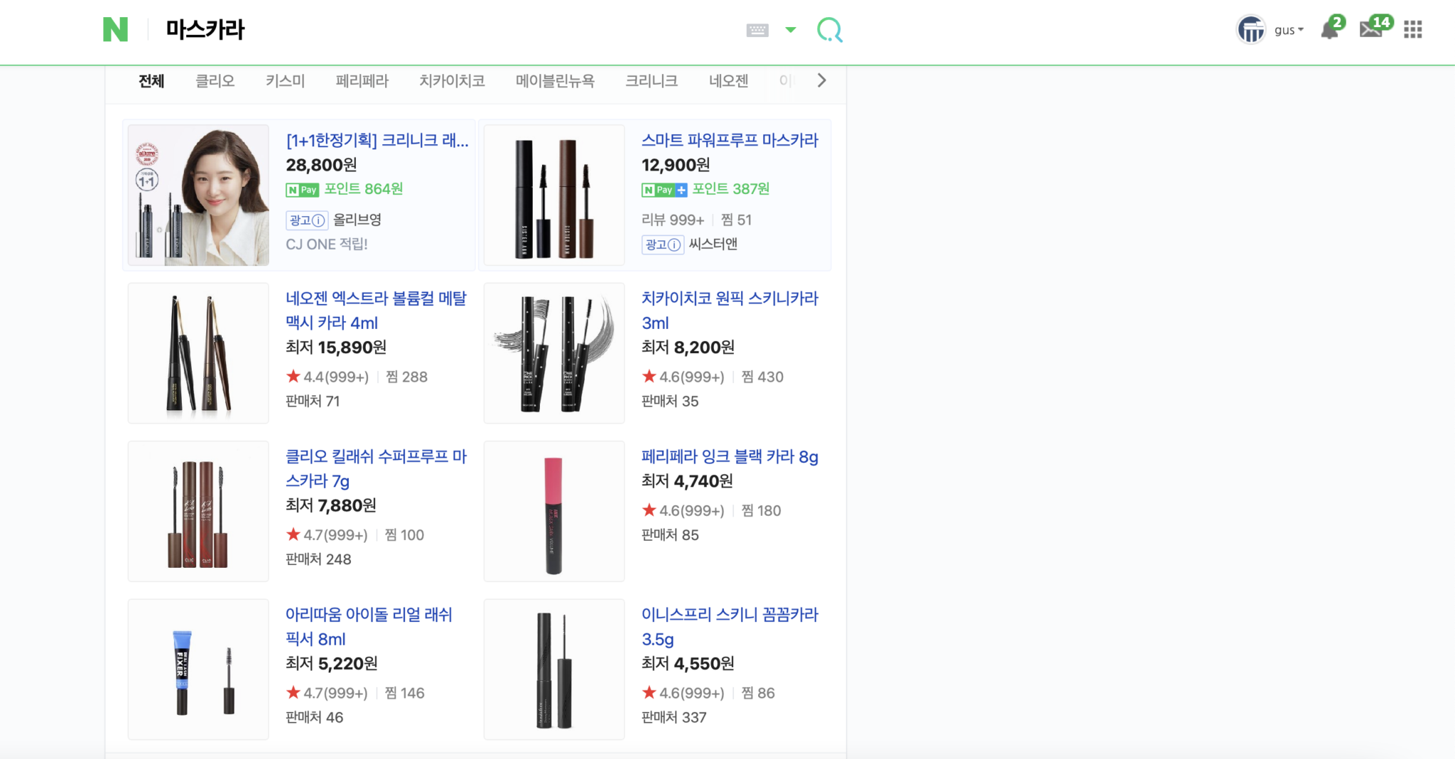 노출 광고를 클릭하면 네이버 쇼핑이 이미 구축된 상품 카탈로그로 이동합니다.