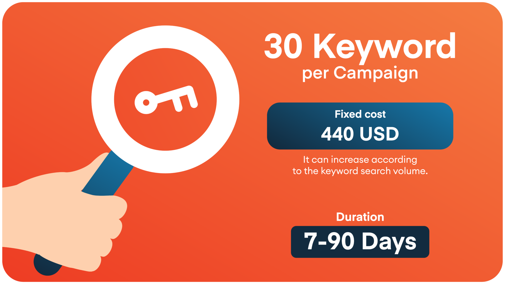 특정 키워드를 검색하면 검색결과 페이지 상단에 브랜드 이미지, 텍스트, 동영상 등 최신 콘텐츠가 노출됩니다. 그러나 캠페인당 30개의 키워드만 사용할 수 있습니다. 이런 형태의 광고는 사용시 고정비가 440달러이며, 키워드 검색량에 따라 증액될 수 있습니다. 또한 기간은 7~90일에 불과합니다.