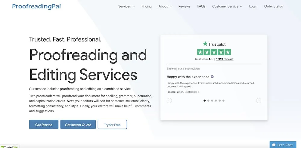 ProofreadingPal은 편집과 교정을 결합하여 제공하는 교정 서비스입니다. 그들의 팀은 귀하의 문서에 철자, 문법, 구두점 및 대소문자 오류가 있는지 확인하고 편집을 요청하면 문장 구조, 명확성, 서식 및 스타일을 확인합니다.