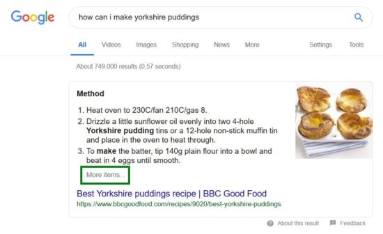 Malte Landwehr : 이것은 질문의 유형과 제공되는 답변의 유형에 따라 다릅니다. 직접 응답이 트래픽을 생성하는 것은 전적으로 가능합니다. 심지어 전환하는 트래픽까지도 가능합니다. 이것은 스니펫이 불완전한 답변을 표시할 때 가장 효과적입니다. "불완전한"이란 발췌문과 URL 사이에 "추가 항목..." 행이 표시됨을 의미합니다.