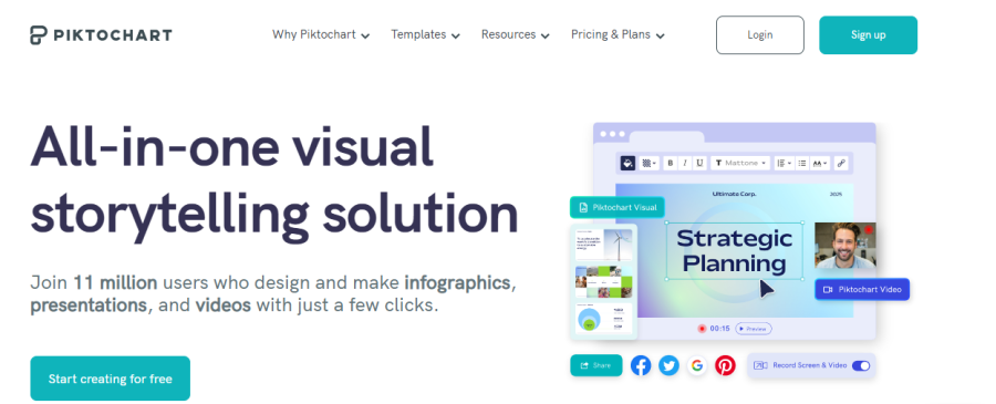 PiktoChart는 필요한 거의 모든 기능을 갖춘 올인원 사진 편집 사이트입니다. 사진을 가능한 한 최상의 방법으로 꾸미는 데 도움이 될 수 있습니다. 소셜 미디어 게시물에 대한 매우 독특하고 매력적인 템플릿을 찾으려면 이것을 시도해야 합니다.