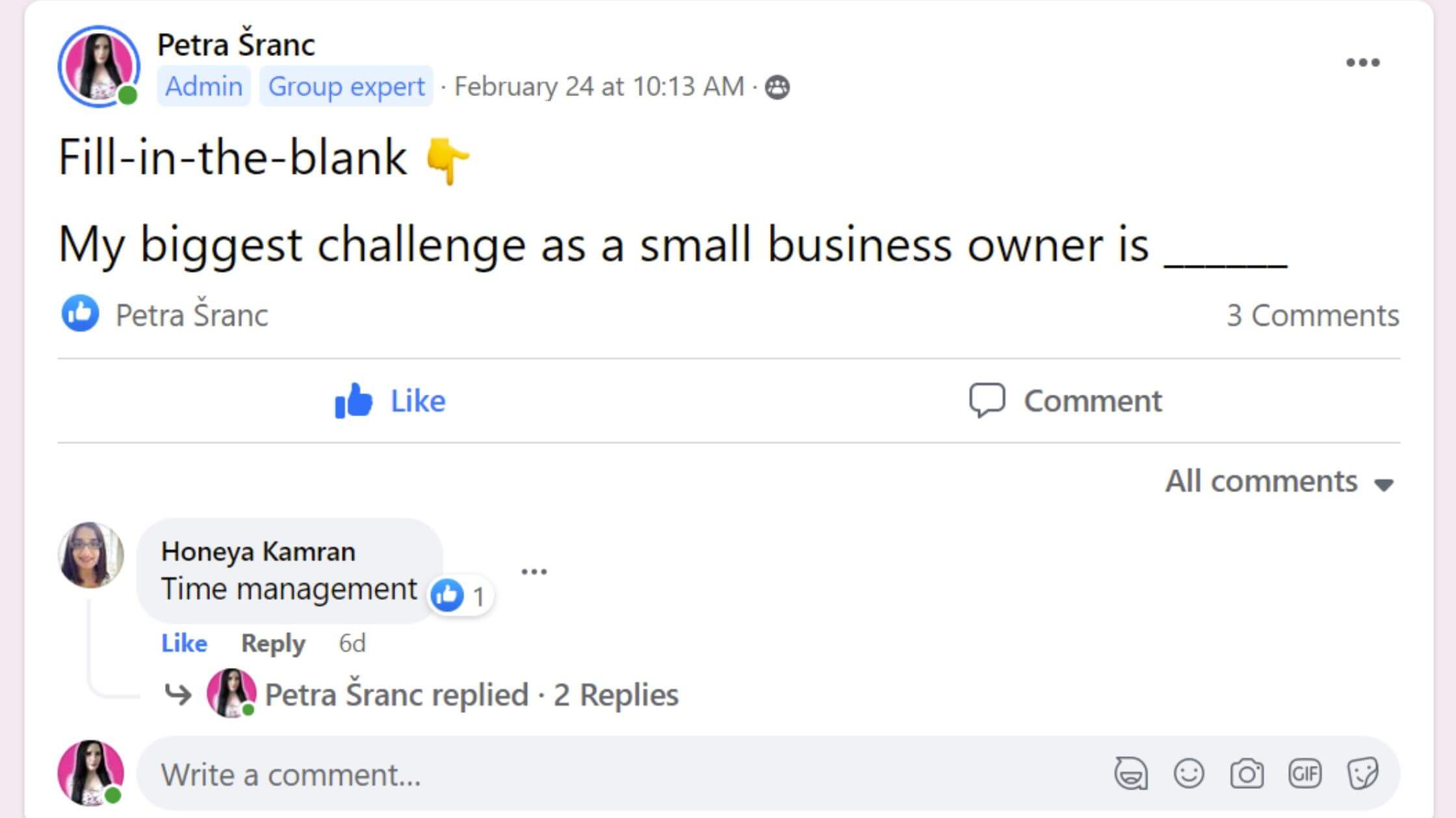 토론을 계속할 수 있는 좋은 방법이기 때문입니다. 즉, 응답할 때마다 귀하의 게시물이 뉴스 피드 상단에 올라가고 더 많은 사람들이 보게 될 것입니다(노출).