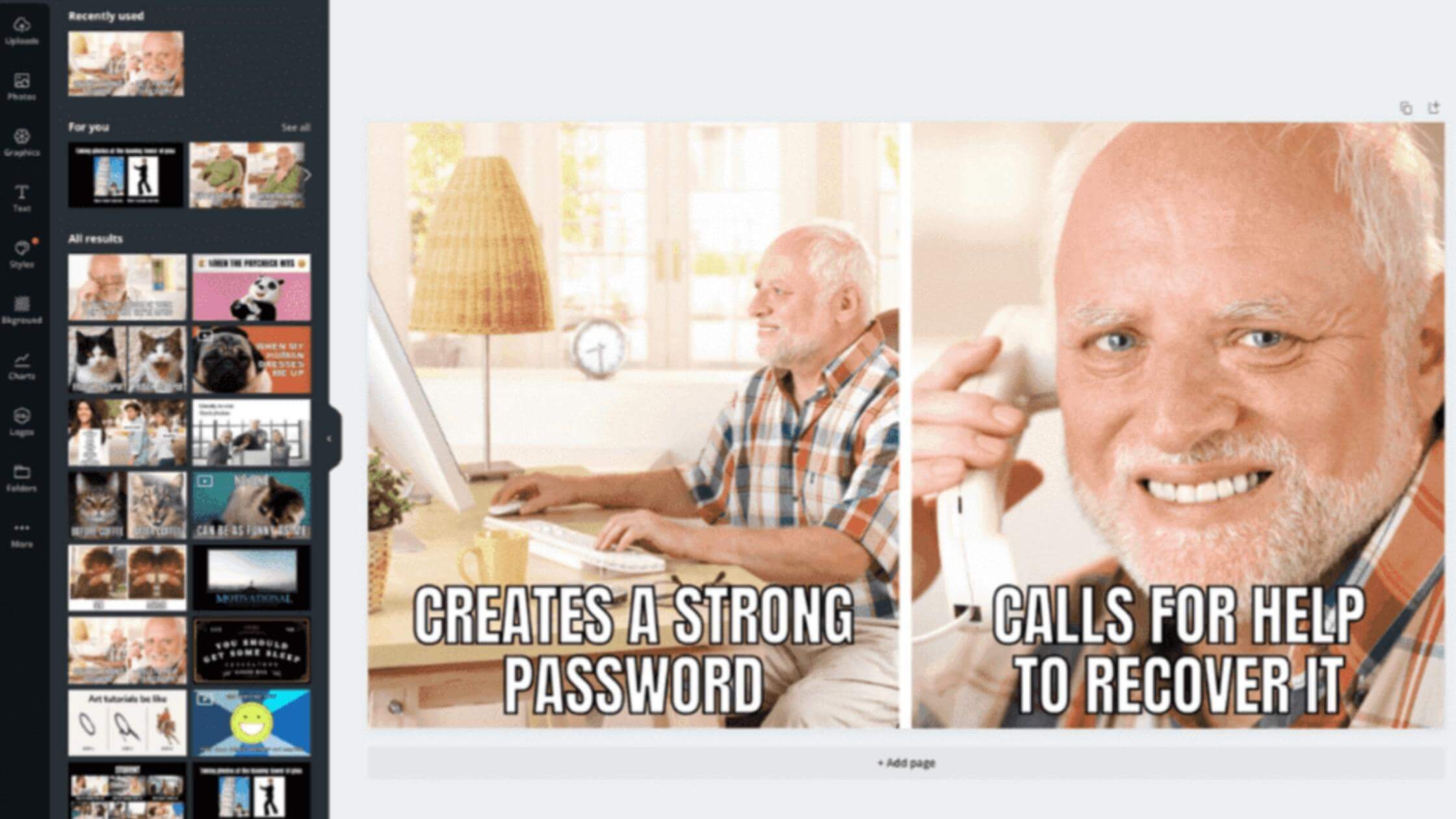 Canva 또는 원하는 다른 도구로 밈을 만들 수 있습니다. 너무 열심히 하는 것처럼 보이지 않도록 테마가 브랜드 아이덴티티 및 목소리와 일치하는지 확인하세요.