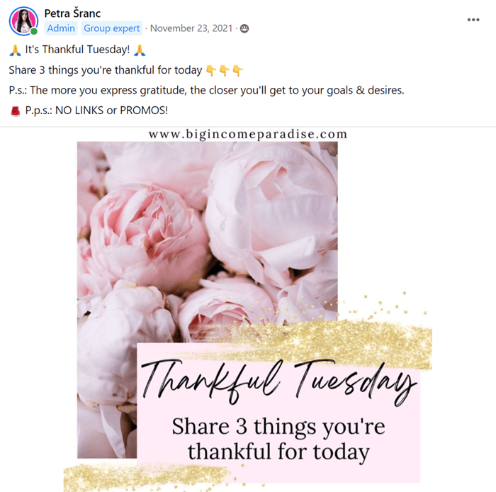 예를 들어, 내 Big Income Paradise Instagram 에서 캡션의 끝 부분에 명확한 행동 촉구를 제공합니다.