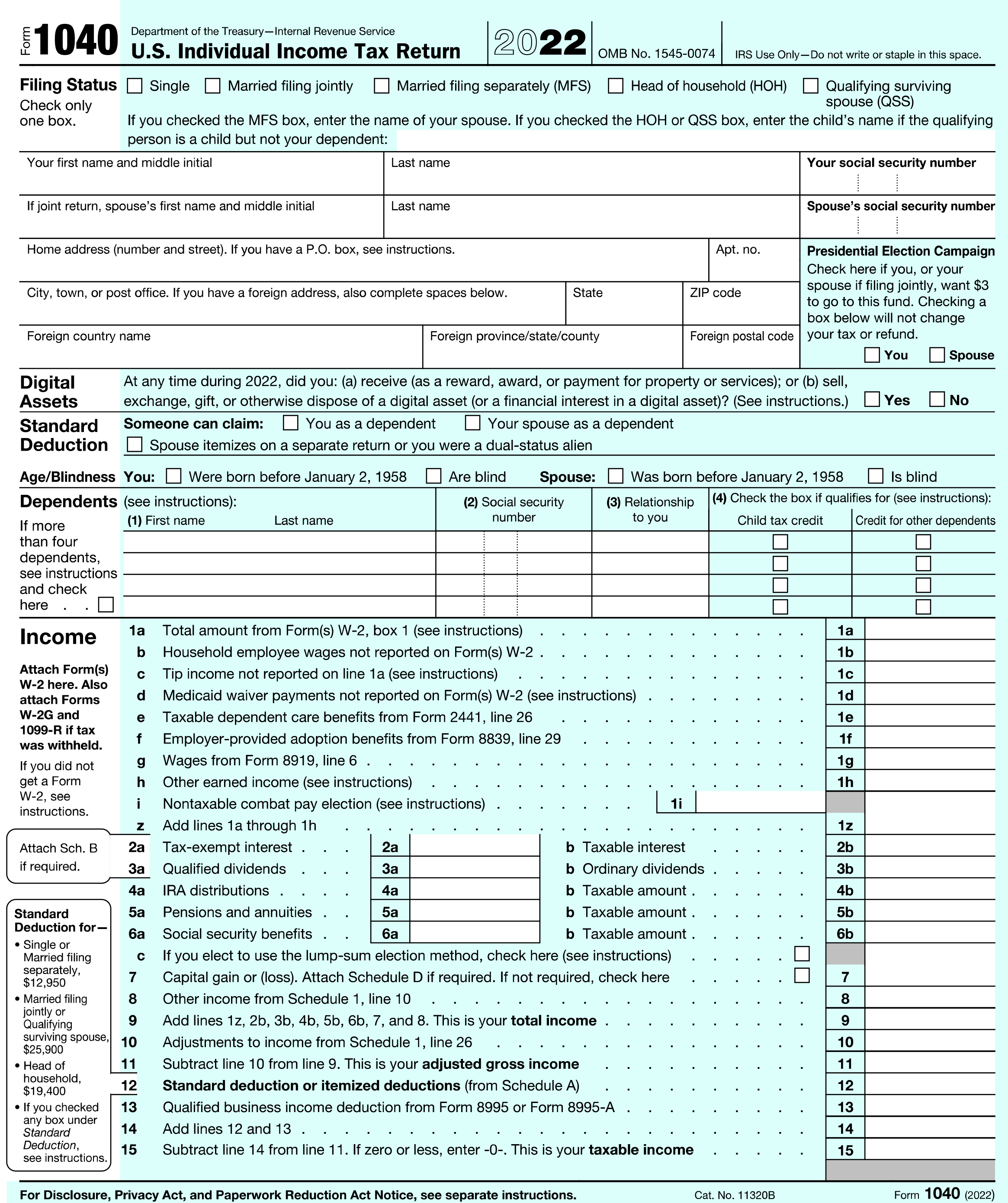 Pobierz formularz podatkowy 1040 tutaj.