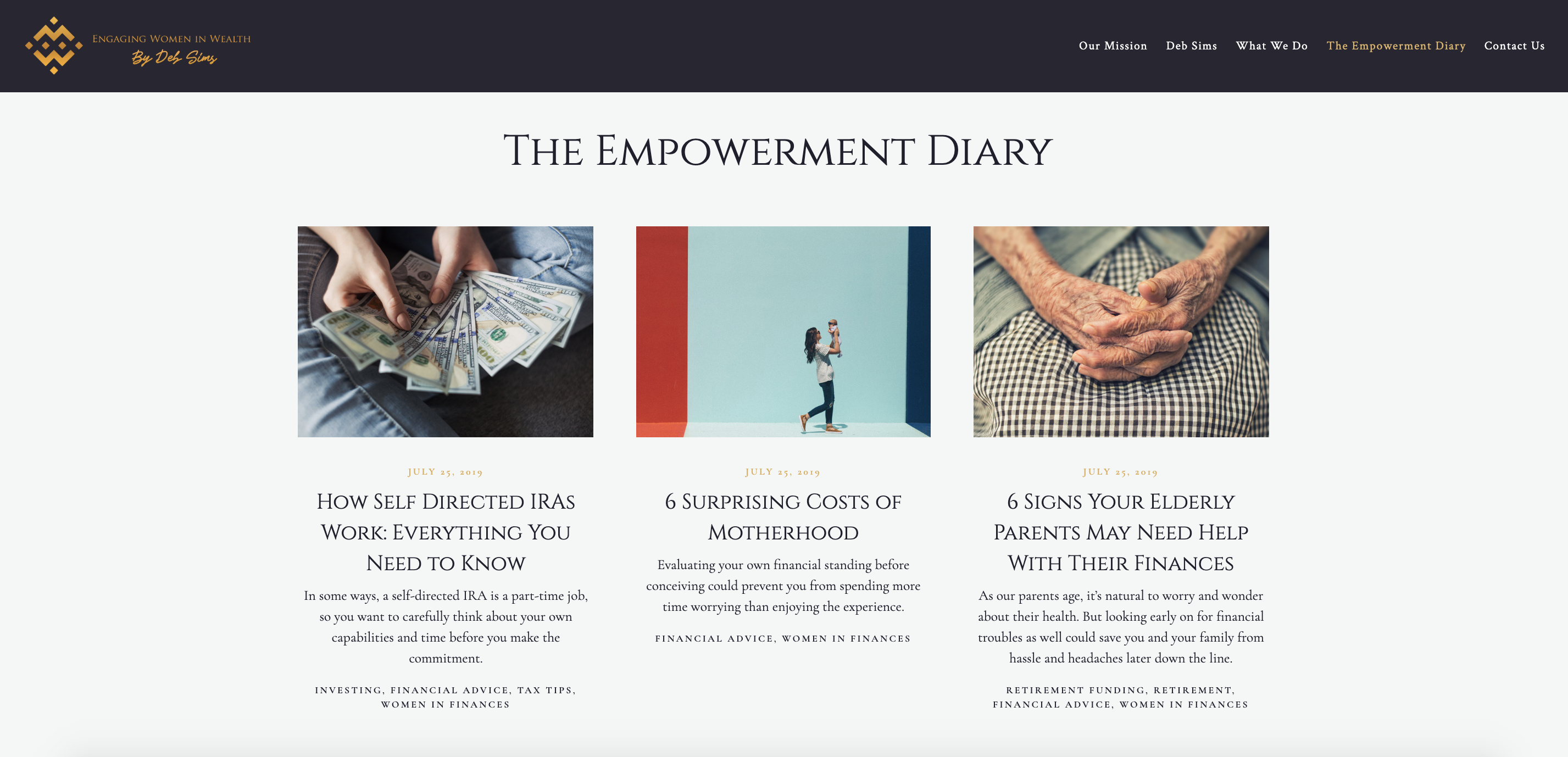 Ponadto Engaging Women in Wealth naprawdę ilustruje, jak bardzo dbają o swoją niszę, po prostu z tytułu strony bloga: „The Empowerment Diary”. Dziennik Empowerment naprawdę pokazuje kobietom, którym służą, że są tutaj, aby pomóc im zdobyć wiedzę finansową. Ważne jest, abyś pisał specjalnie dla swojej niszowej publiczności. Jakie tematy chcieliby przeczytać? W czym potrzebują pomocy? Co ich interesuje? Znajdź rzeczy, które odnoszą się do Twoich niszowych odbiorców, aby naprawdę cieszyli się angażowaniem w Twoje treści.
