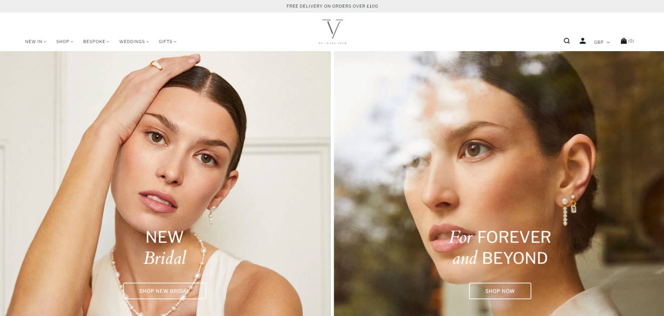 Współpracowaliśmy z Laurą, założycielką i liderem kreatywnym w V by Laura Vann, i obserwowaliśmy skalę marki w Shopify w ciągu ostatnich 6 lat. Ta marka jubilerska specjalizuje się w produktach w stylu art deco w przystępnych cenach, a także projektuje i tworzy biżuterię i obrączki ślubne na zamówienie. Oprócz sklepu internetowego produkty V są również dostępne w sklepach Harvey Nichols, John Lewis oraz Fortnum and Mason.