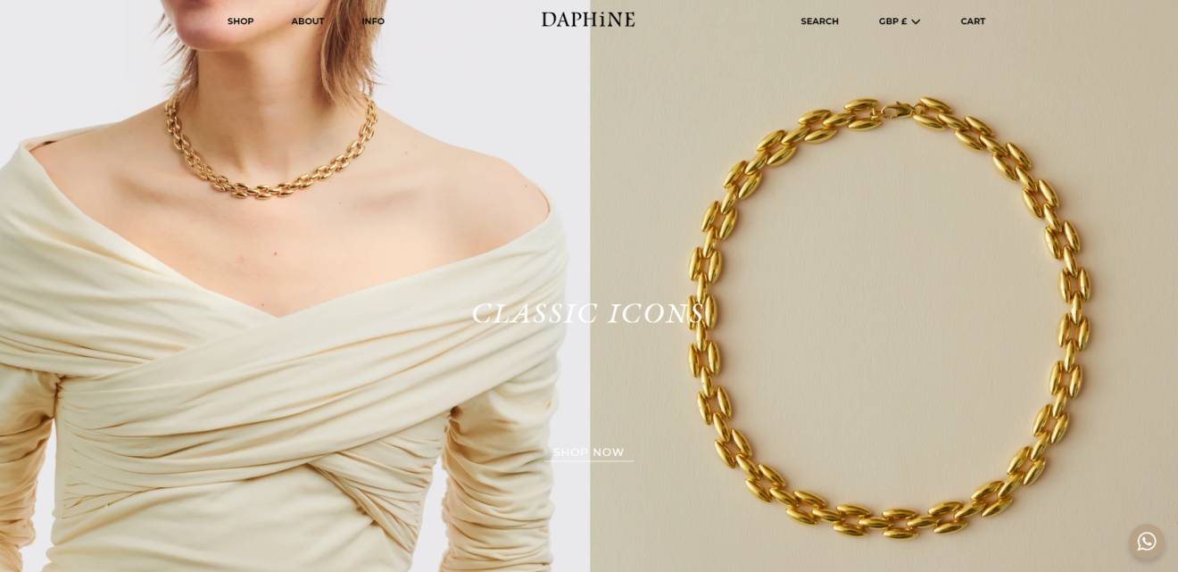 Daphine została założona w Londynie w 2018 roku przez Damasię Ball i Philippine de Follin. Mocne przyjaciółki, które połączył wspólny perfekcjonizm, zamiłowanie do prostego, nieskomplikowanego designu oraz fakt, że obie pochodzą z rodzin silnych kobiet. Nieustannie zainspirowani sposobem, w jaki ich matki, babcie i siostry bez wysiłku przystosowują się do wielu ról, postanowili stworzyć biżuterię, która spełniałaby to samo zadanie.