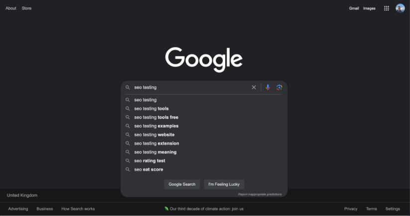 Narzędzia takie jak Google Keyword Planner i Google Autocomplete są świetne. Możesz zacząć od początkowego słowa kluczowego (takiego jak testowanie SEO) i znaleźć inne powiązane tematy, których szukają ludzie, które są istotne dla tego zapytania początkowego. Na przykład, jeśli wyszukujemy w Google hasło „testy SEO”, możemy zobaczyć inne powiązane tematy, których ludzie szukają: