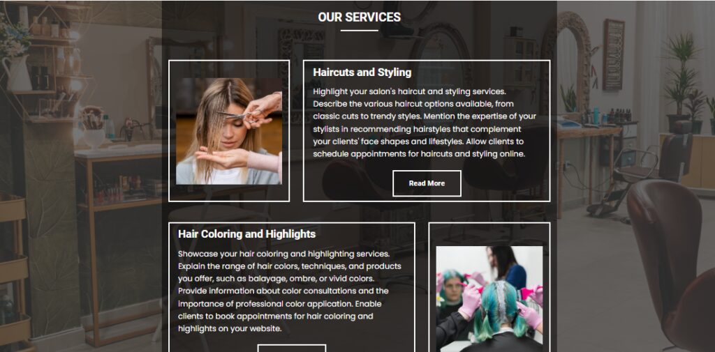 Dostępne są szablony o wysokiej konwersji, dzięki którym łatwo wyróżnić usługi, portfolio stylistów i referencje klientów.