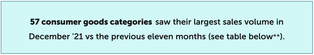Na podstawie IPN Category Pacesetters, indeksowanie powyżej 100, co stanowi znacznie wyższy udział w całkowitych zakupach w grudniu '21 w porównaniu do poprzednich jedenastu miesięcy.
