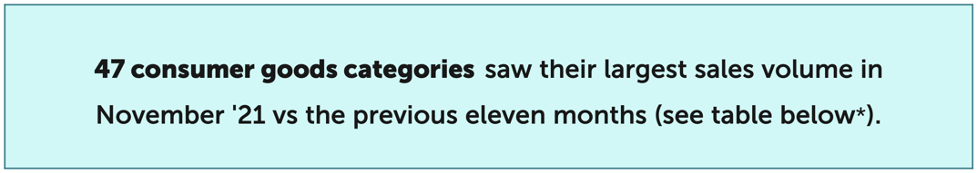 Na podstawie IPN Category Pacesetters, indeksowanie powyżej 100, co stanowi znacznie wyższy udział w całkowitych zakupach w listopadzie '21 w porównaniu do poprzednich jedenastu miesięcy.