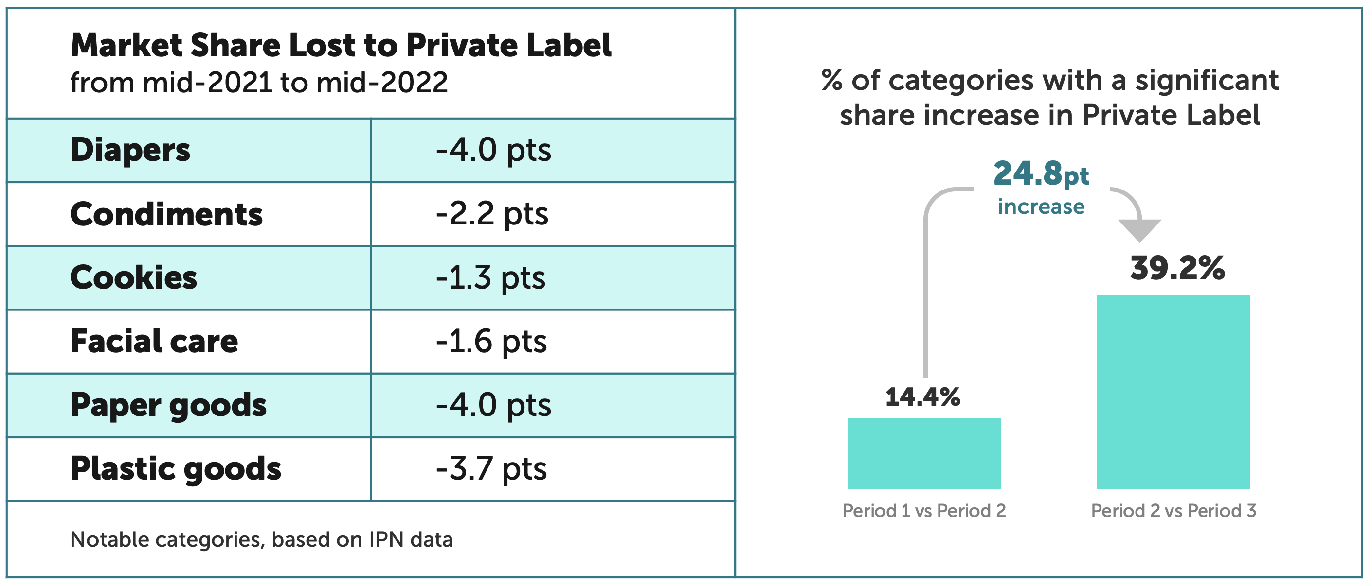 Marki w coraz szybszym tempie tracą udział w rynku we wszystkich kategoriach spożywczych na rzecz marek własnych. Dwoma kluczowymi czynnikami tego trendu są zmieniające się ceny i ostrożność kupujących.