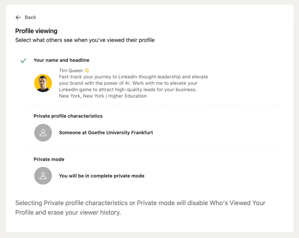 - Nawet jeśli masz konto Premium, nie widzisz nazw przeglądających, którzy wybrali przeglądanie w trybie prywatnym lub mają cechy profilu prywatnego. LinkedIn szanuje prywatność członków, którzy nie chcą ujawniać informacji o sobie podczas przeglądania profili.