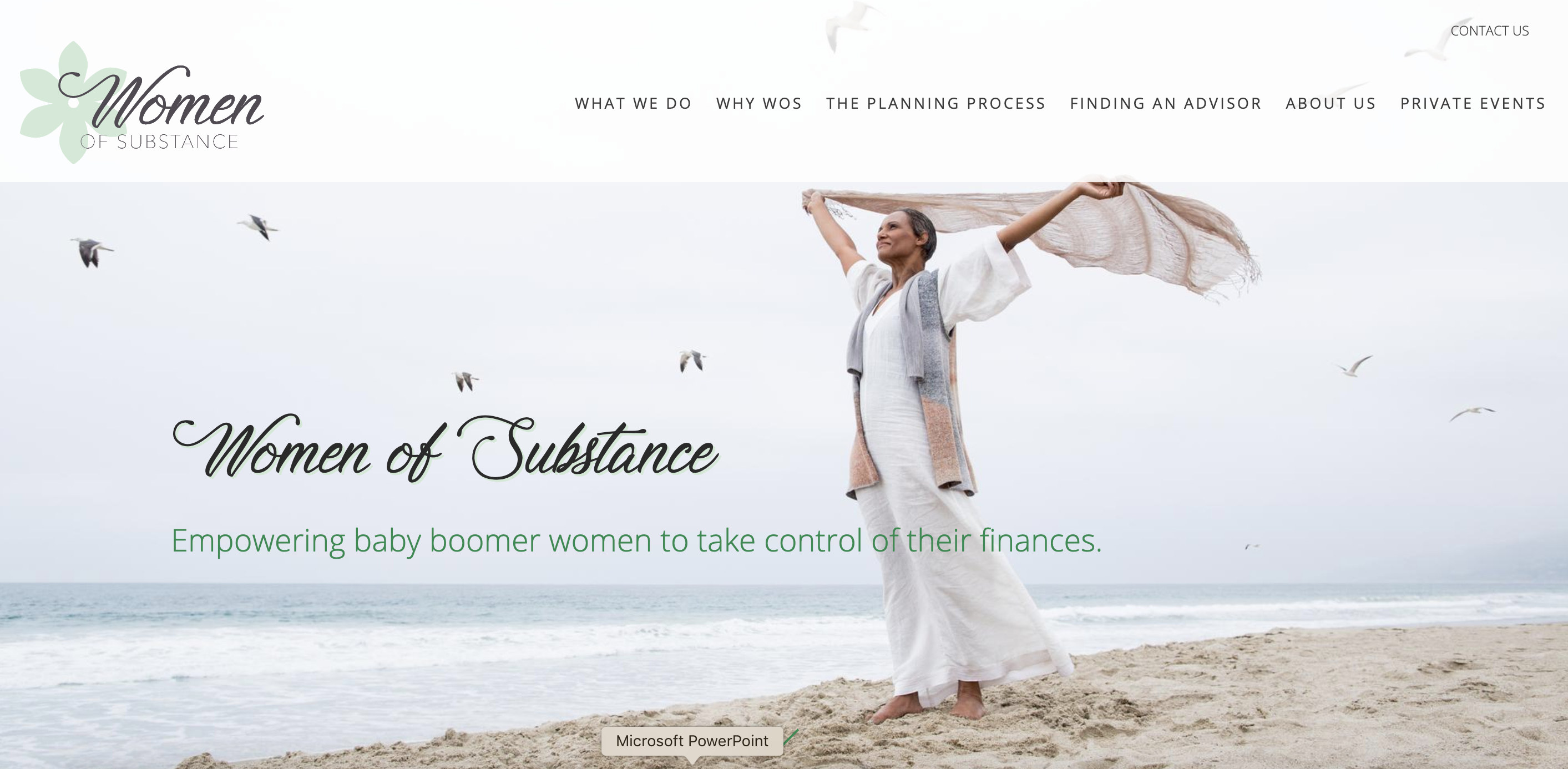 Poniżej, klientka Twenty Over Ten, Women Of Substance, wyraźnie ilustruje na swojej stronie głównej, że ich niszowym rynkiem są kobiety z okresu wyżu demograficznego. Firma zajmująca się wyłącznie odpłatnym planowaniem finansowym jest zaangażowana w pomoc niezależnym kobietom, które poświęciły się budowaniu kariery zawodowej. Gdy już wiesz, kim jest Twoja nisza, możesz lepiej zaspokoić swoją witrynę, media społecznościowe i inne działania marketingowe w swojej niszy, aby pokazać, że jesteś tutaj, aby zaspokoić ich potrzeby.