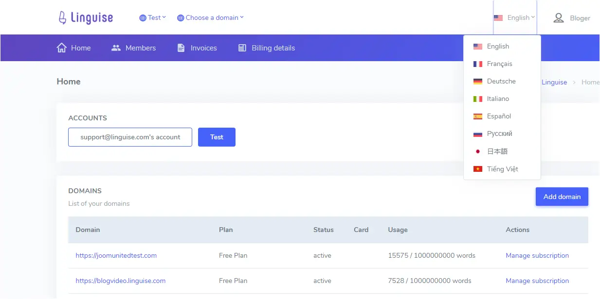 Klucz API domeny służy do jednoznacznego identyfikowania Twojej witryny jako właściciela konta Linguise. Możesz zalogować się za pomocą swoich danych uwierzytelniających i zawsze przeniesie Cię to na Twoją osobistą stronę. Zidentyfikowanie Twojej witryny w Linguise umożliwi usłudze dokładne śledzenie zmian na Twoim koncie, takich jak dokonywane płatności, dodawanie członków itp.