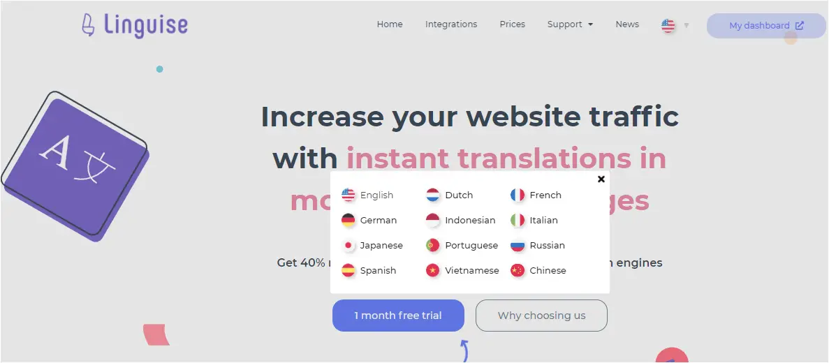 Linguise to sieć neuronowa SaaS zaprojektowana w celu zautomatyzowania tłumaczenia zawartości witryny WP. Podobnie jak obecne rozwiązania tłumaczeniowe, ma wbudowane funkcje uczenia maszynowego, które automatycznie włączają sugestie po kilku demonstracjach. Jest to wysoce elastyczne rozwiązanie zdolne do tłumaczenia ponad 80 języków.